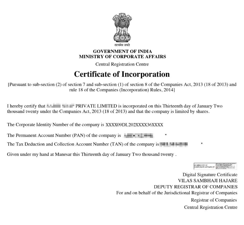 Step 5: Receive Certificate of Incorporation